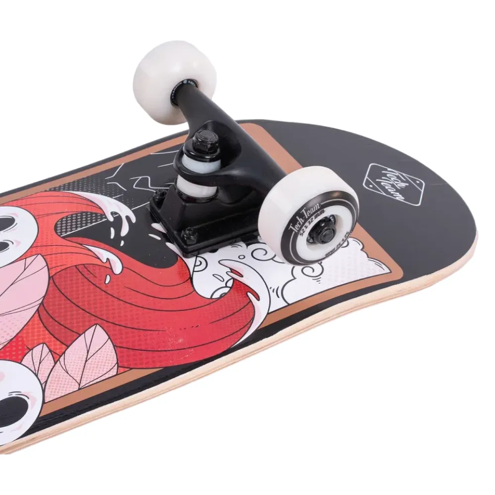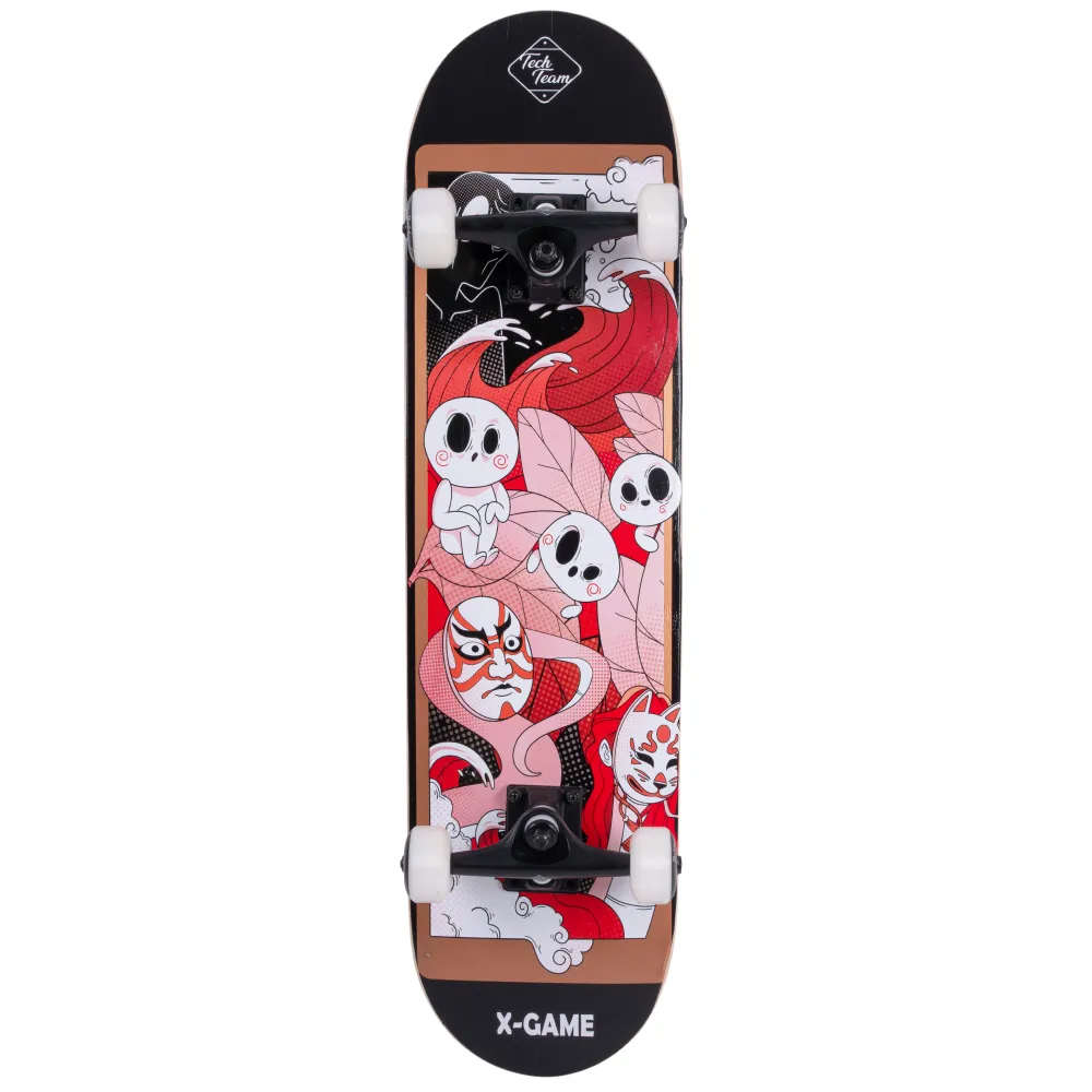 Скейтборд Tech Team X-Game 2024 красного цвета - это идеальное сочетание стиля и функциональности. Дека, изготовленная из 9 слоев прочного китайского клена, имеет размер 31”х 8”. Верхняя часть деки покрыта черной шкуркой 80AB для отличной сцепляемости, а нижняя украшена стильным принтом в японском стиле в красных тонах - подчеркивающим ваш индивидуальный стиль. Материал колес - PU 52x32 mm, с жесткостью 85А, обеспечивает отличное управление и стабильность на любой поверхности. Скейтборд оснащен подшипниками стандарта ABEC 9 для гладкой и быстрой езды. Дека имеет двойной концевой загиб (Double Kick), что делает его подходящим для исполнения разнообразных трюков. Этот скейтборд будет прекрасным выбором как для новичков, так и для опытных райдеров.