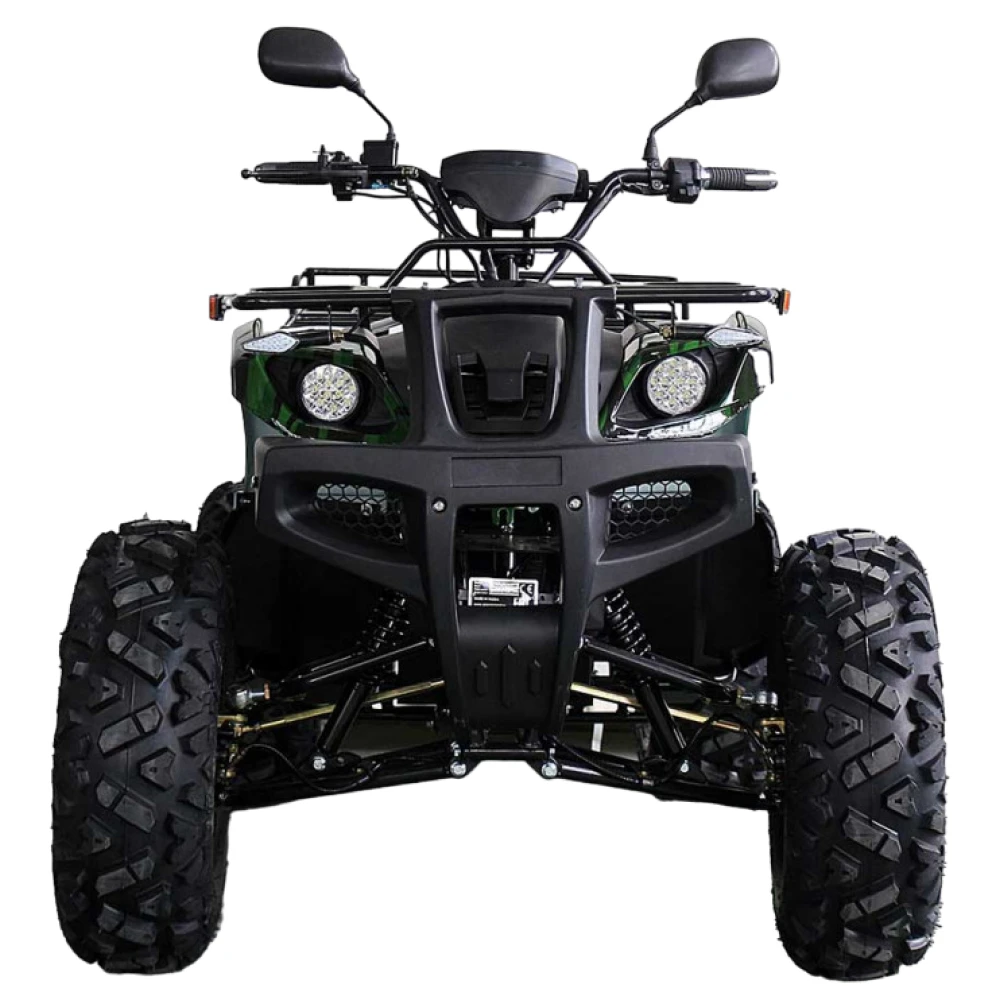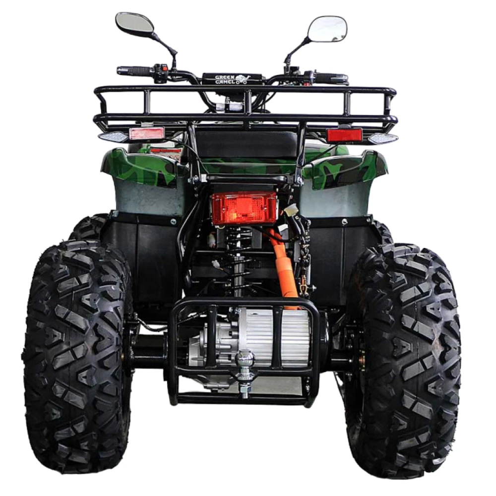 Электроквадроцикл достигает скорости до 50 км/ч. Батарея на 72V 3000W может проехать до 60 км на одном заряде. R12 alum дифференциал улучшает проходимость и стабильность на всех типах поверхностей. А зеленый цвет добавляет красоты и оригинальности.