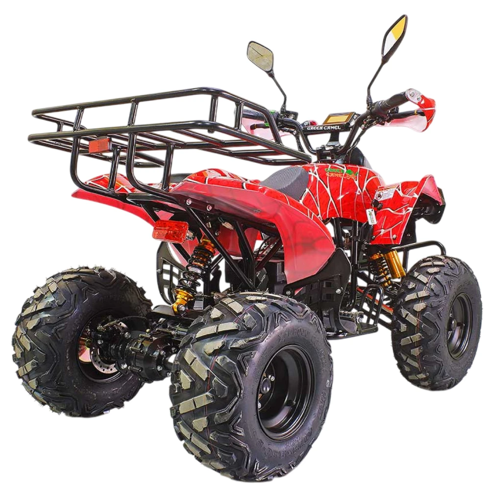 Быстрый, надёжный и невероятно стильный – все это про подростковый квадроцикл GreenCamel Atakama T500 Красный паук. Он прекрасно подойдёт для детей возрастом от семи лет. По своим техническим характеристикам он не уступит целому ряду электроскутеров. Он способен развивать скорость в 40 км/ч. На одном заряде преодолеет 40 км (можно приобрести более мощные батареи). Для полной подзарядки вам понадобится восемь часов.