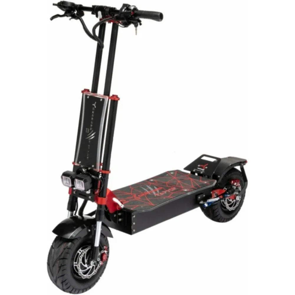 Его уникальность заключается в его невероятных характеристиках, которые обеспечат владельцу высокую скорость движения (до 90 км/ч), потрясающий запас хода (до 70 км) и комфортное управление. Это настоящий внедорожник в мире электросамокатов. 13 дюймовые внедорожные колеса и мощные моторы ( в совокупности 5000w) позволят совершать прогулки в любых условиях. Электросамокат Yokamura Raptor 13 объединил в себе новейшие разработки, технологии и инновации в области производства электросамокатов. Брутальный дизайн в купе с широкими возможностями по максимальной нагрузке (до 150 кг) отлично подходит для представителей мужского пола.