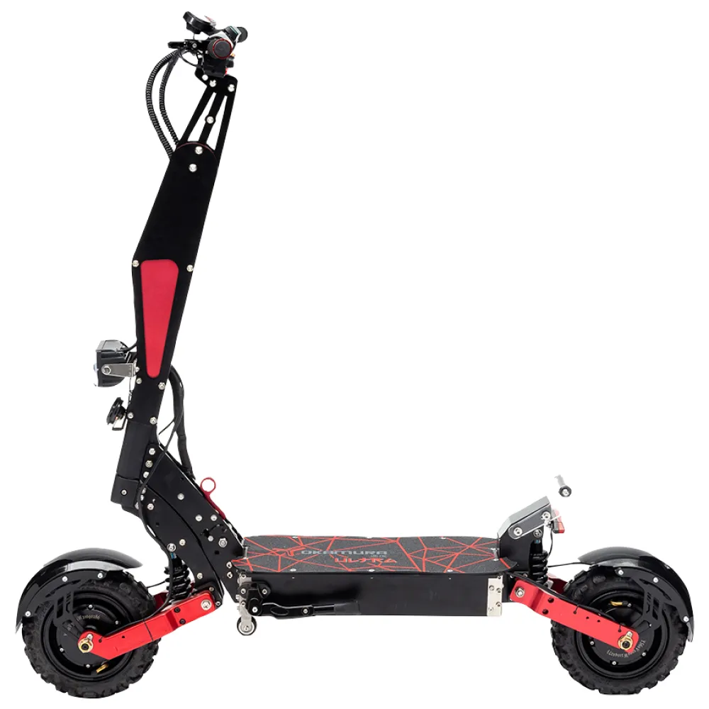 Рынок электротранспорта, в частности электросамокатов не стоит на месте, а динамично развивается, что заставляет производителей разрабатывать новые технологии, внедрять инновации, выпускать продукты, превосходящие по своим характеристикам изделия, которые выпускались еще менее года назад. Компания Yokamura являющаяся одним из лидеров данного сегмента выпустила новинку – электросамокат Yokamura Ultra. Он оборудован невероятными моторами мощностью по 3000w, которые разгонят самокат весом 51 кг и допустимой максимальной нагрузкой 150 кг до 85 км/ч. Впечатляет, не правда ли?