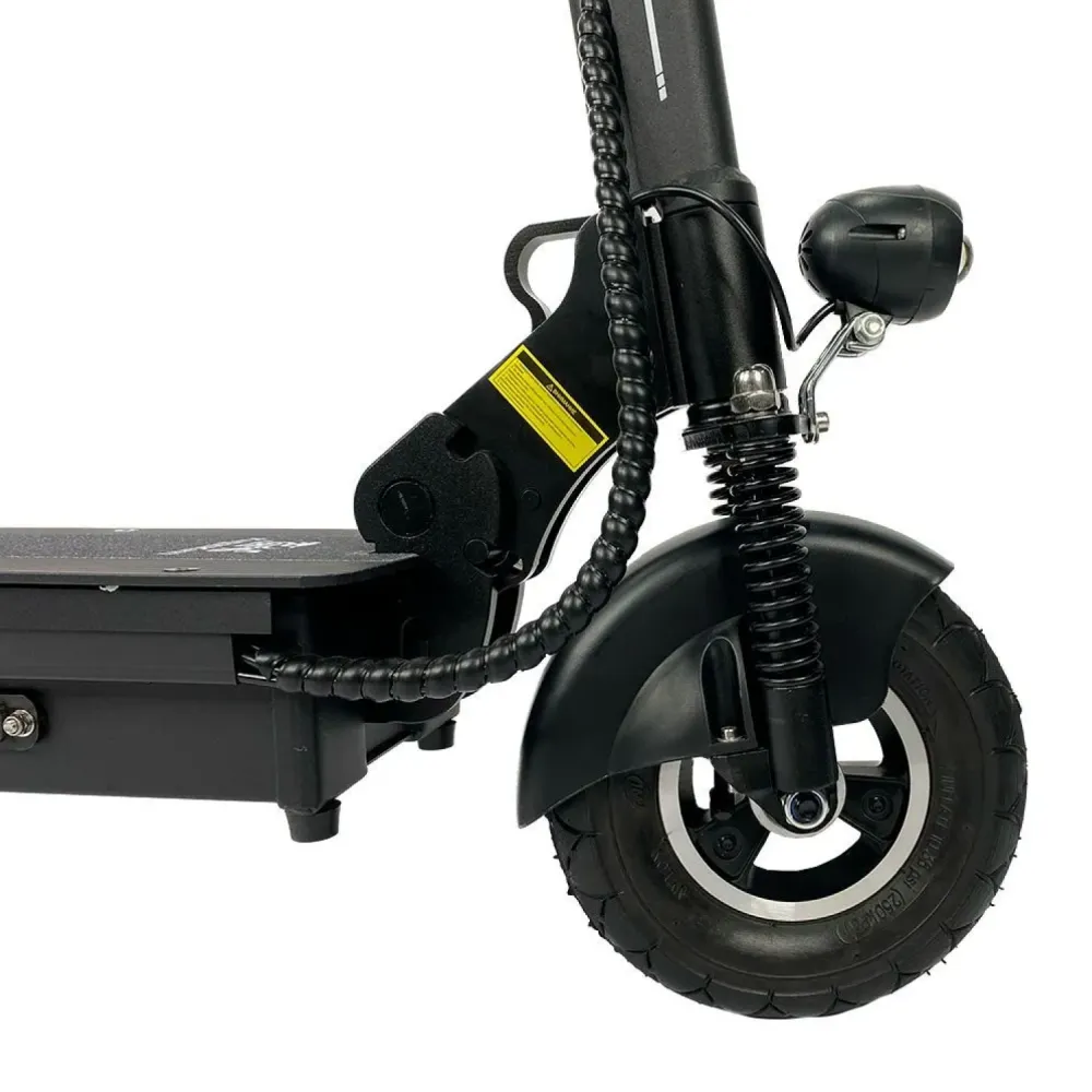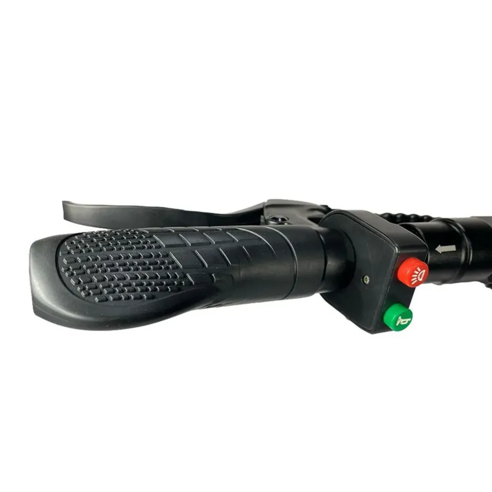 Конструкция каркаса основательная, съемное, мягкое сидение можно отрегулировать по высоте, оно оснащено дополнительными амортизаторами. Руль складывается и регулируется по высоте. На нем установлен рычаг заднего тормоза, звуковой сигнал, включатель световой подсветки. Внешнее освещение состоит из фары впереди, стоп-сигнала сзади и по бокам деки светодиодной подсветки. С правой стороны руля крепится бортовой компьютер.