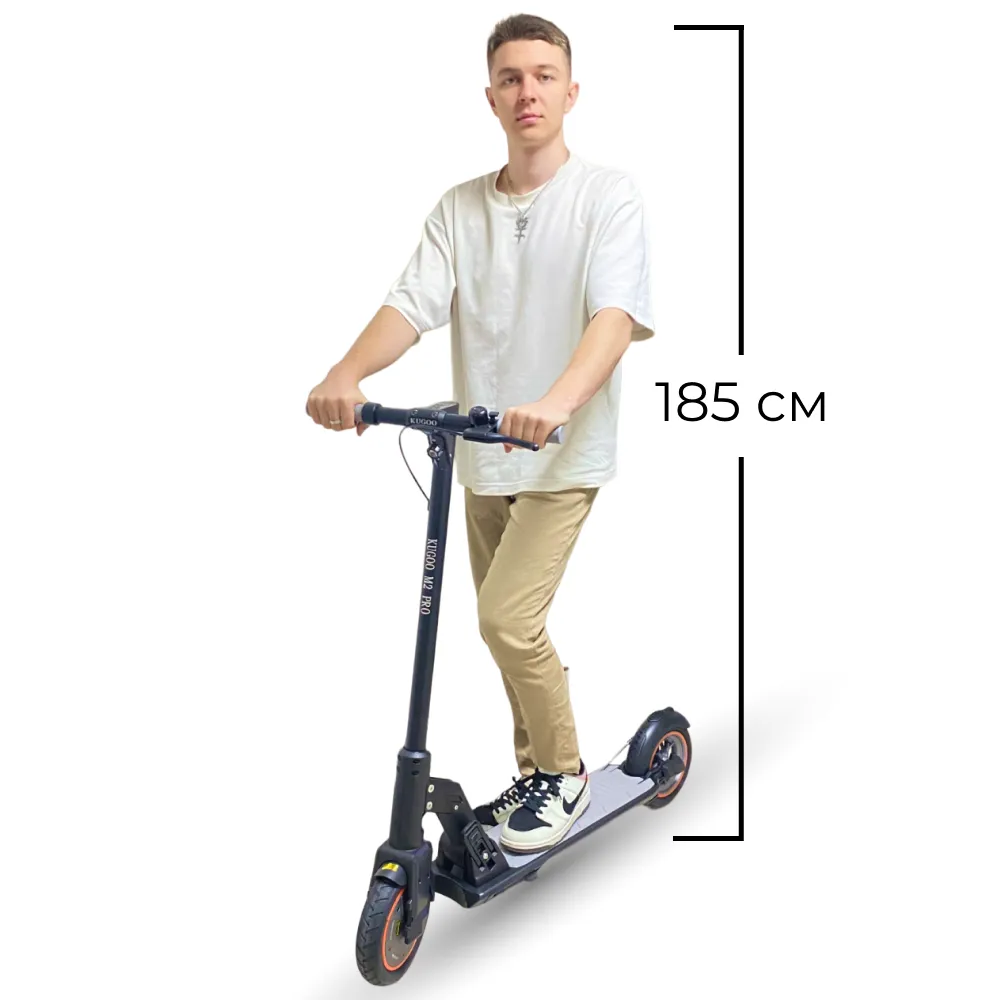 Самокат Kugoo M2 Pro оборудован колесами диаметром 8,5 дюймов, это характерно для линейки легких моделей. Удобный руль, с мягкими, полипропиленовыми рукоятками, платформа покрыта не скользким материалом. При маневрировании ноги не соскальзывают, райдер чувствует себя уверено.