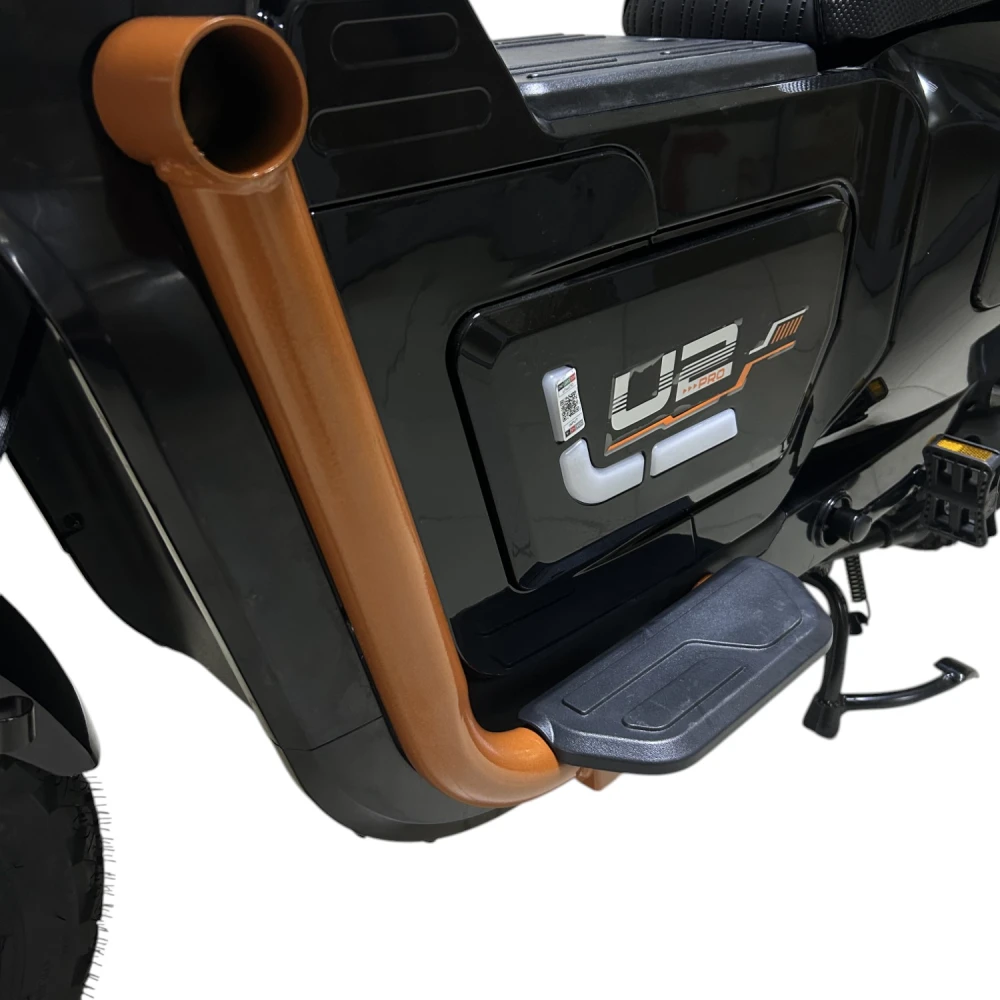 Электроскутер GT U2 PRO в черном исполнении — это сочетание мощности и элегантности. Двигатель 1500W и максимальная скорость 70 км/ч позволяют уверенно передвигаться по дороге. С запасом хода до 70 км и аккумулятором 30Ah, вы можете наслаждаться длительными поездками без подзарядки. Скутер поддерживает нагрузку до 160 кг, что позволяет взять с собой пассажира, для которого предусмотрены отдельные подножки. Дисковая гидравлическая тормозная система обеспечивает надежное торможение, а подвеска спереди и сзади сглаживает неровности дороги. Большая фара освещает путь в темное время суток, а современный дизайн подчеркнет ваш стиль.