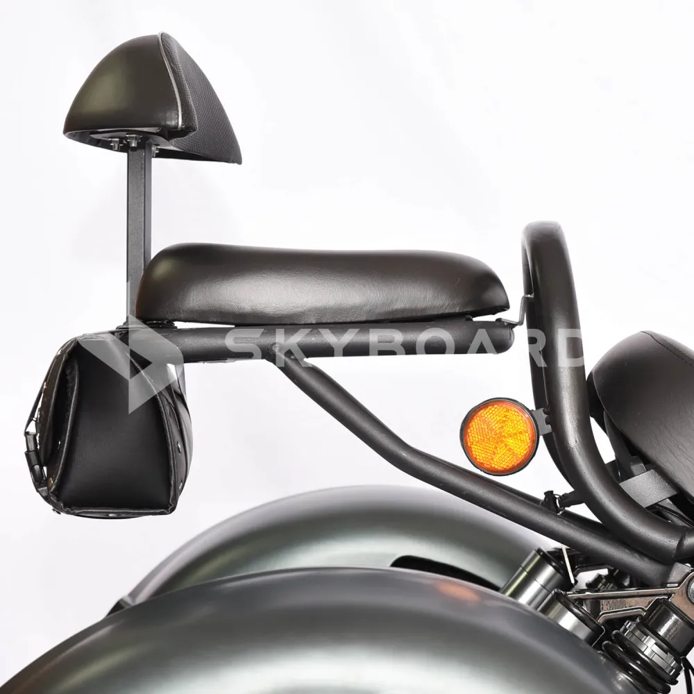 Электроскутер SKYBOARD TRIKE CHOPPER-4000 PRO FAST – мощный и эксклюзивный, первое, что приходит на ум при визуальном ознакомлении с техникой. Изогнутая рама, брутальный дизайн наталкивают на мысли о максимальных скоростях и непередаваемых ощущениях. Со слов производителя предчувствие клиентов является правильным.