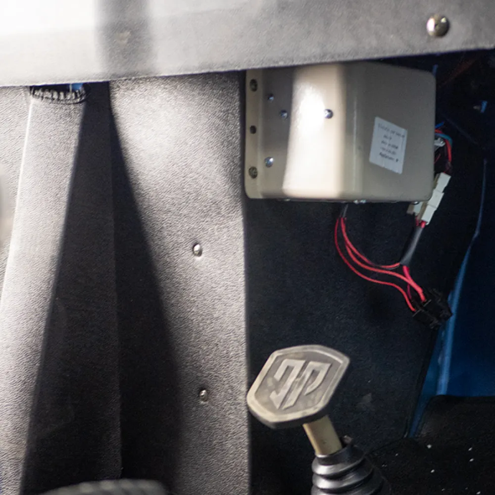 Модель оборудована линзованной светодиодной фарой для лучшей видимости, увеличенным барабанным тормозом для безопасной остановки и механизмом стеклоочистителя для комфортного вождения в дождливую погоду. Магнитола с радио, Bluetooth и USB сделает каждую поездку еще приятнее. Кабина открывается с обеих сторон, что упрощает доступ к управлению и улучшает вентиляцию.