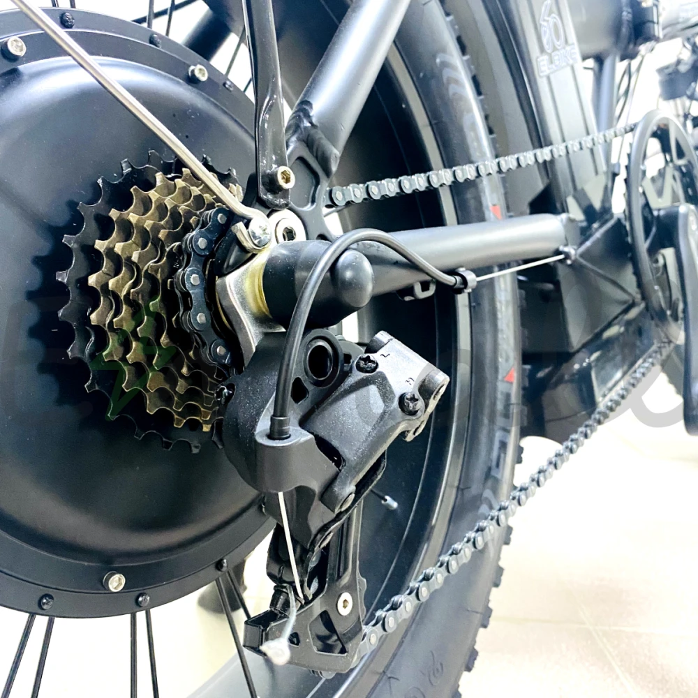 Двигатели изготовлены в соответствии с современными требованиями. Мощность двух моторов в пределах 1000 Вт, позволяет набирать разгон до 47 км/час. Техника также рассчитана на переход в педальный режим для улучшения скоростных характеристик и увеличения расстояния пути. Широкие надувные колеса позволяют легко преодолевать пересеченную местность и дорожные неровности. Модель подойдет для поездок по песку и снегу. Алюминиевая рама прочная и легкая, имеет складную конструкцию для простой транспортировки и хранения. Тормозная система усовершенствованная, состоит из дисковых тормозов.