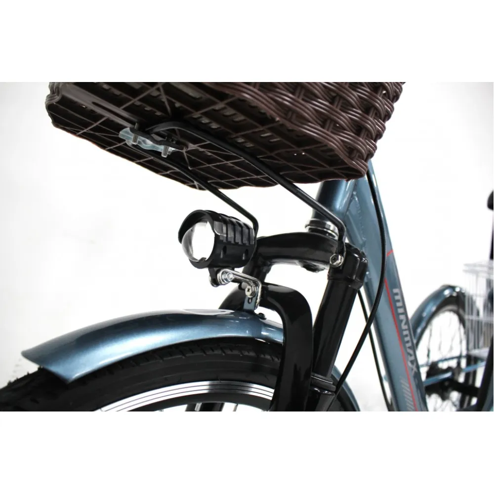 Электровелосипед может использоваться для ежедневной езды на базар, в магазин и вылазки. Передняя корзина выглядит эксклюзивно, эстетически красиво, задняя – вместительная и прочная. В сочетании с другими характеристиками электровелосипед способен выдержать грузоподъемность до 120 кг, что важно при эксплуатации техники в сельской местности.
