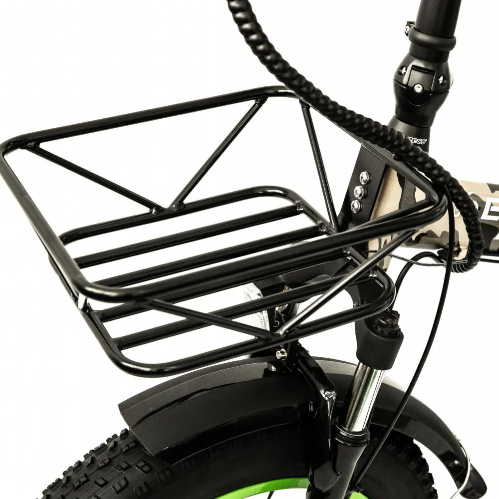 Электровелосипед Elbike Taiga 3 Twix 2000 камуфляж – велогибрид с высокой степенью проходимости понравился продвинутым и начинающим райдерам. Выглядит современно. Изготовлен в привлекательном дизайне. При массе 32 кг рассчитан на грузоподъемность до 130 кг. Для оформления заказа или покупки тс по приемлемой стоимости предлагаем связаться с нашим менеджером в чате или по телефону. Модель укомплектована 2 мощными электродвижками по 1000 Вт, способна разогнаться до 50 км/час, проехать без дополнительной подзарядки расстояние до 75 км/час. При подключении режима педалирования пробег можно увеличить до 135 км. С такими характеристиками можно рассчитывать на продолжительную безопасную езду. Большие дутые колеса размером 20×4 способны преодолевать неровности, разгоняться до максимальных скоростей по неровностям. Проблем с преодолением ухабистой местности у техники нет. Модель востребована рыбаками, любителями летнего туризма, активного время провождения на свежем воздухе. Наличие бортового компьютера полностью исключает случаи, в виде разрядки батареи. 7-скоростняа система передач обещает быструю езду в конечное место дислокации. Надеемся, вы остались в восторге от байка! Предлагаем приступить к оформлению заказа.