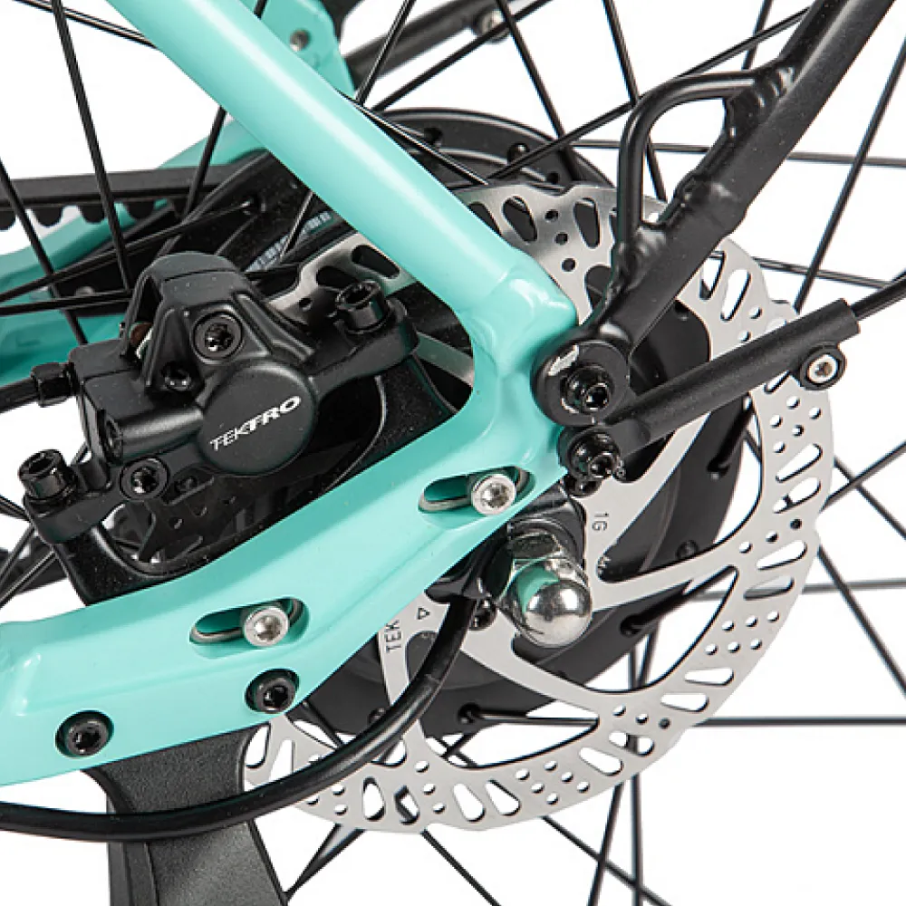 Eltreco Olymp оснащен гидравлическими дисковыми тормозами диаметром 160 мм, которые обеспечивают отличное торможение в любых условиях. Это обеспечивает безопасность и контроль во время езды.