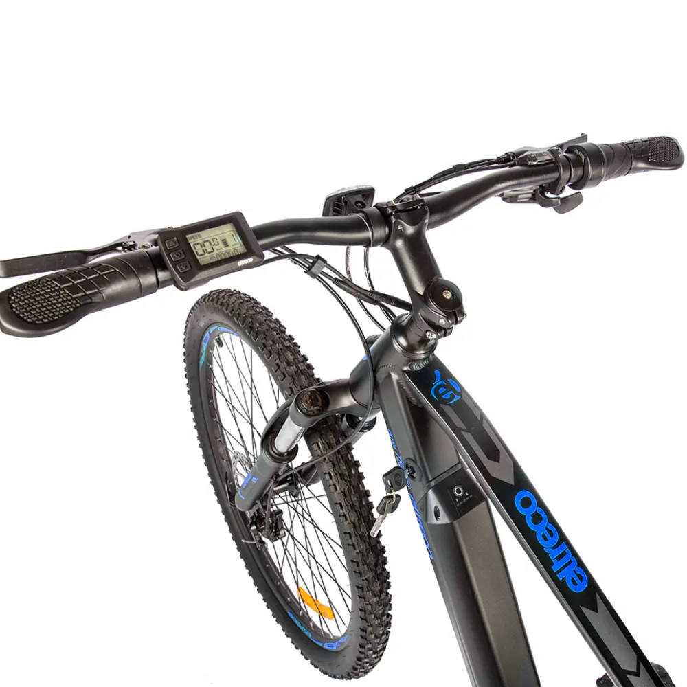 Электровелосипед Eltreco Ultra Max черно-синий - это стильное и эффективное транспортное средство, которое предлагает комфортное и экологически чистое передвижение.