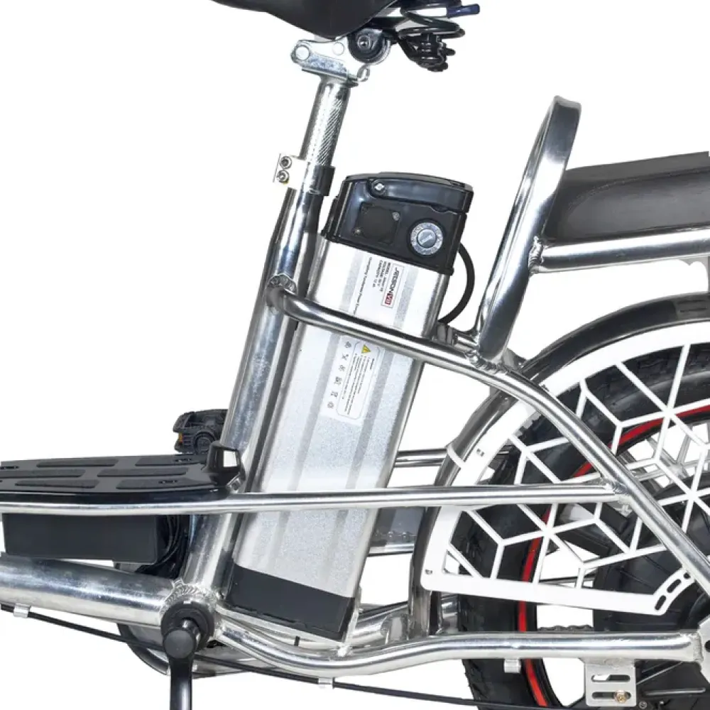 Электровелосипед Jetson Pro Max Ultra Plus (60V30Ah) – это ваш надежный спутник в городских джунглях и загородных поездках. Элегантный серебристый цвет корпуса гармонично сочетается с функциональностью и технологичностью, а формат "колхозник" с просторной платформой для ног обеспечивает удобство при движении. Мощный 500W двигатель в сочетании с задним гидравлическим дисковым тормозом и передним барабанным обеспечивают надежную и безопасную езду. Литые диски и амортизация спереди и сзади делают каждую поездку плавной и комфортной. Съемный аккумулятор на 30 Ah, расположенный за сиденьем, дает возможность преодолевать расстояние до 110 км в режиме ассистента. Диаметр колес 18 дюймов, а удобное сиденье и возможность перевозки второго пассажира дарят комфорт и удовольствие от каждой поездки.