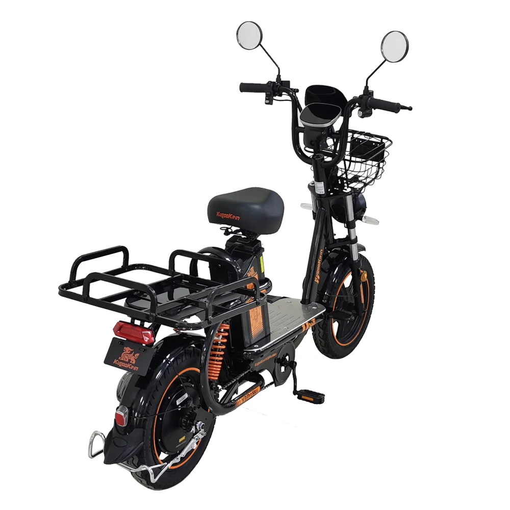 Прочный багажник идеально подходит для курьеров и перевозки личных вещей.