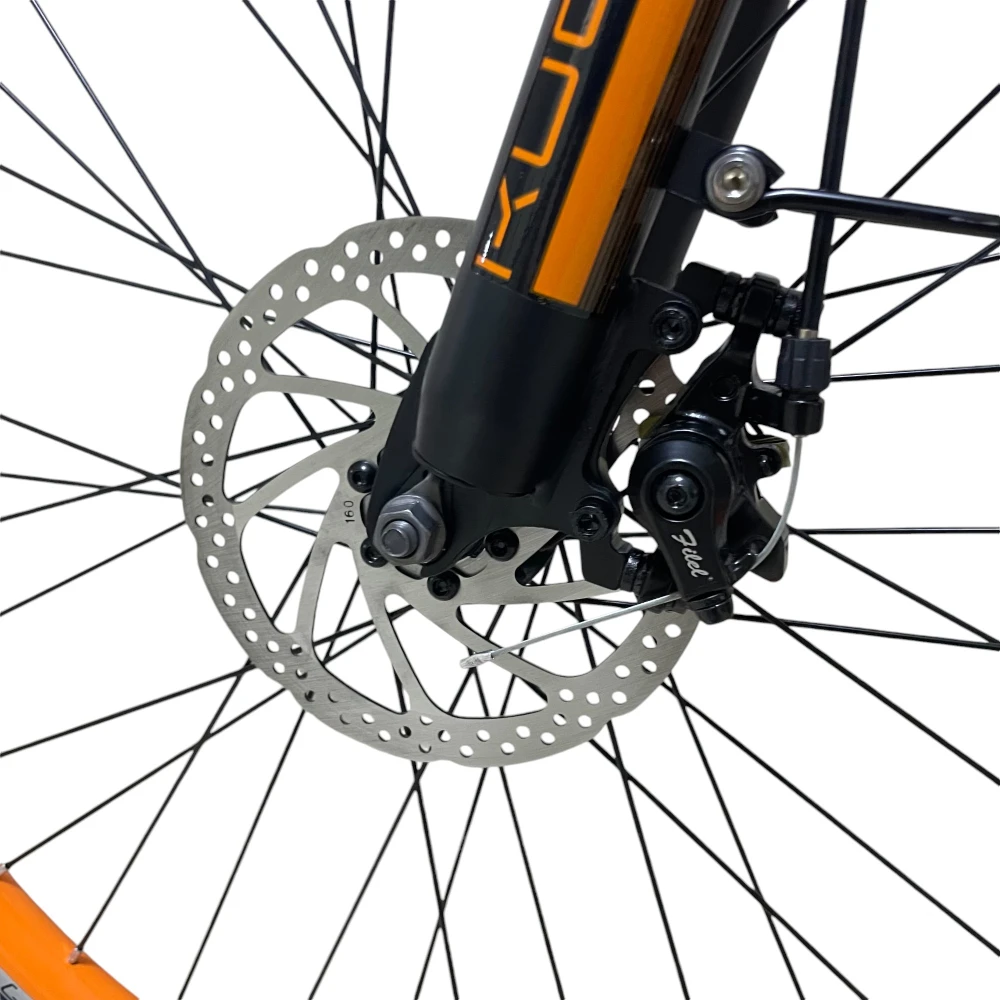 27.5″ колёса и амортизационная вилка сглаживают неровности дороги, комфорт даже по пересечёнке.