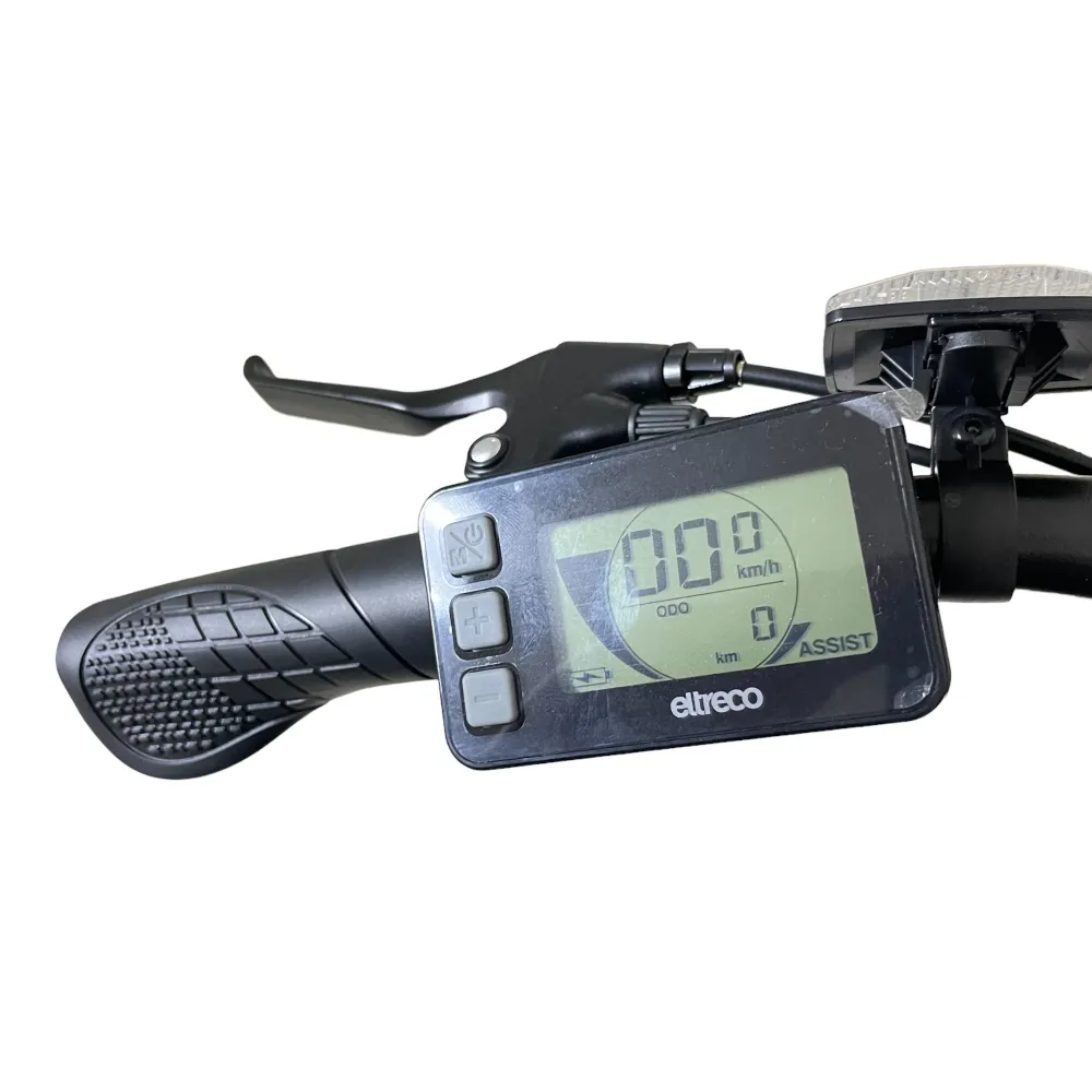 LCD-дисплей, с информацией о скорости, заряде и пробеге, уровень мощности ассистента