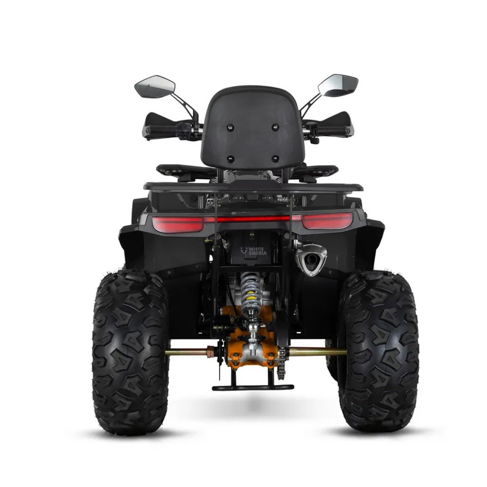 Корпус квадроцикла выполнен из прочной стали и высокопрочных пластиковых деталей, что гарантирует устойчивость к ударам и износу. Вес 185 кг при размерах 178х95х110 см делает модель устойчивой и управляемой. Дека и сиденье удобны для длительного использования, предусмотрены функции для комфортного контроля — спидометр, датчик уровня топлива, регулируемый рычаг переключения передач. Самостоятельное техническое обслуживание доступно благодаря простому доступу к узлам, а мелкий ремонт можно выполнить без спецоборудования. Возможна базовая кастомизация по внешнему виду, включая аксессуары и защитные элементы.