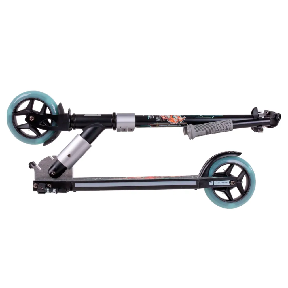 Самокат Tech Team Comfort 145 Lux Evolution 2024 черный – это сочетание стиля, функциональности и высокого качества. С весом в 3.75 кг, он идеально подходит для активных детей. Диаметр колес 145х30 мм с подсветкой обеспечивает плавное и безопасное катание. черная рама и грисы подчеркивают стильный дизайн, а бирюзовые колеса добавляют яркость. Складная конструкция позволяет легко хранить и переносить самокат. На деке изображен демонический красный тигр, что придает самокату индивидуальный характер. Встроенная подсветка деки, отличительная черта Lux версии, делает катание еще более увлекательным и заметным. Подшипники ABEC 7 обеспечивают плавное скольжение, а регулируемая высота руля (82-91 см) подходит для детей от 5 лет и роста от 110 см. Этот самокат – это не только средство передвижения, но и выразительный аксессуар для молодых и смелых райдеров.