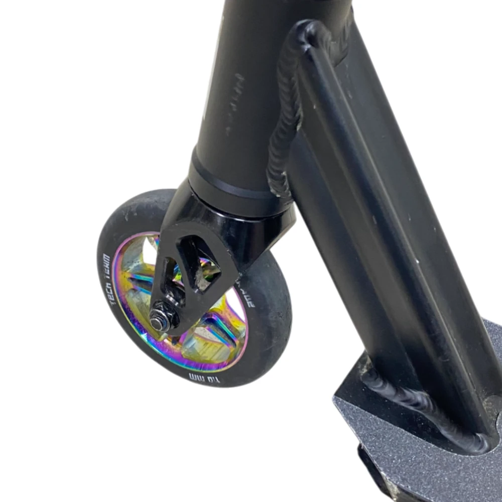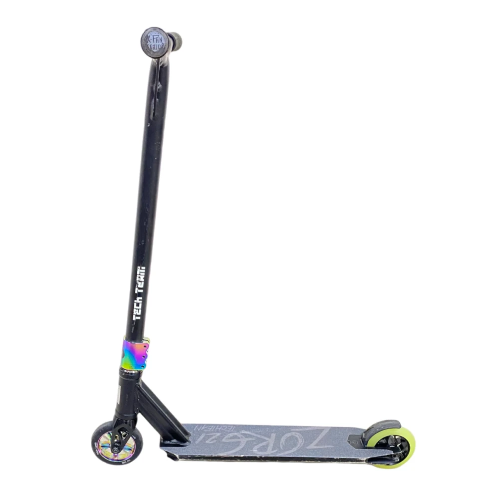 Трюковой самокат Tech Team Comrade - это идеальный выбор для начинающих и опытных райдеров, стремящихся к новым достижениям в мире трюков и катания. С высотой руля от деки в 590 мм, он обеспечивает удобную посадку для наездников ростом от 120 до 165 см. Конструкция самоката выполнена из прочного алюминия ALU 6061, что гарантирует надежность и долговечность. Самокат оснащен высококлассными подшипниками ABEC 7 Carbon, которые обеспечивают плавный и быстрый катание. Его вес всего 3,35 кг делает его легким и маневренным, а максимальная нагрузка до 100 кг позволяет использовать его как подросткам, так и взрослым. С диаметром колес 110 мм и материалом из полиуретана, самокат обеспечивает отличное сцепление и комфорт при катании. Задний ножной тормоз обеспечивает надежное торможение, в то время как система компрессии HIC позволяет легко выполнять трюки. Размер деки составляет 510 мм в длину и 115 мм в ширину, что обеспечивает достаточное пространство для ног. Ширина руля в 540 мм добавляет стабильности во время выполнения трюков. Обратите внимание, что самокат не складной, что делает его более прочным и надежным для активного катания. Tech Team Comrade — это самокат, который вдохновит вас на новые свершения! Самокат использовался в тест-драйве, поэтому имеет царапины на корпусе, которые не влияют на его техническое состояние. Это идеальный выбор для тех, кто хочет попробовать свои силы в трюковом катании без больших затрат.